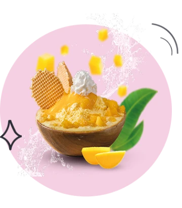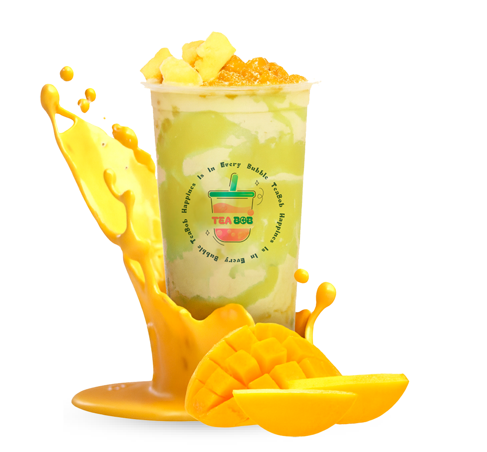 Un deleite tropical con mango fresco, cremoso yogur, suave leche (opciones veganas y sin lactosa disponibles), jugosa boba de mango y un toque de dulce sirope de mango.
